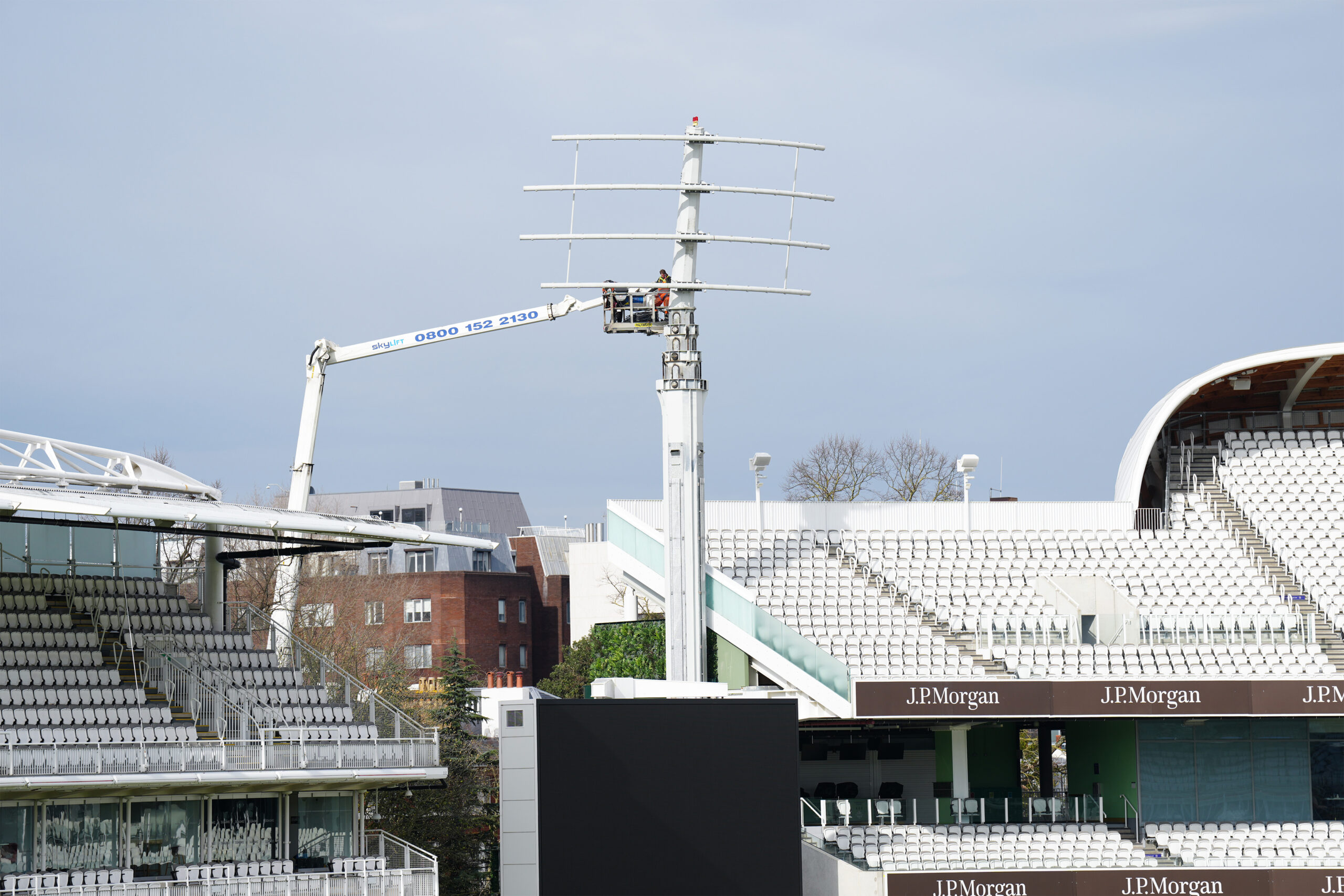 Lord’s Cricket Ground decided to upgrade their original floodlights to meet the evolving demands of modern broadcasting and ensure optimal visibility for both players and spectators during day-night matches. With the growing need for high-definition television coverage and increased energy efficiency, the existing lighting system, while innovative at the time, required enhancements to keep pace with technological advancements. However, Lord’s was keen to retain the original telescopic masts, designed and installed by Abacus, which preserve the ground’s iconic skyline. The challenge was to integrate new LED, more powerful floodlights while maintaining the aesthetic and operational integrity of these signature masts.